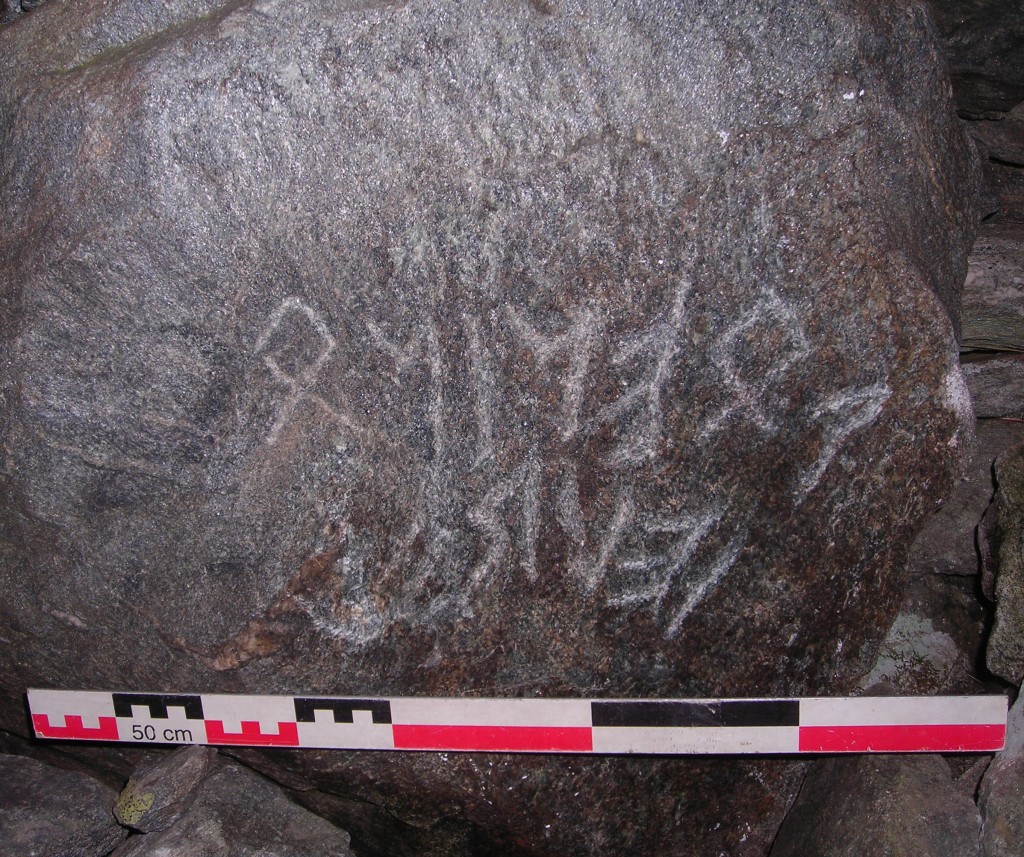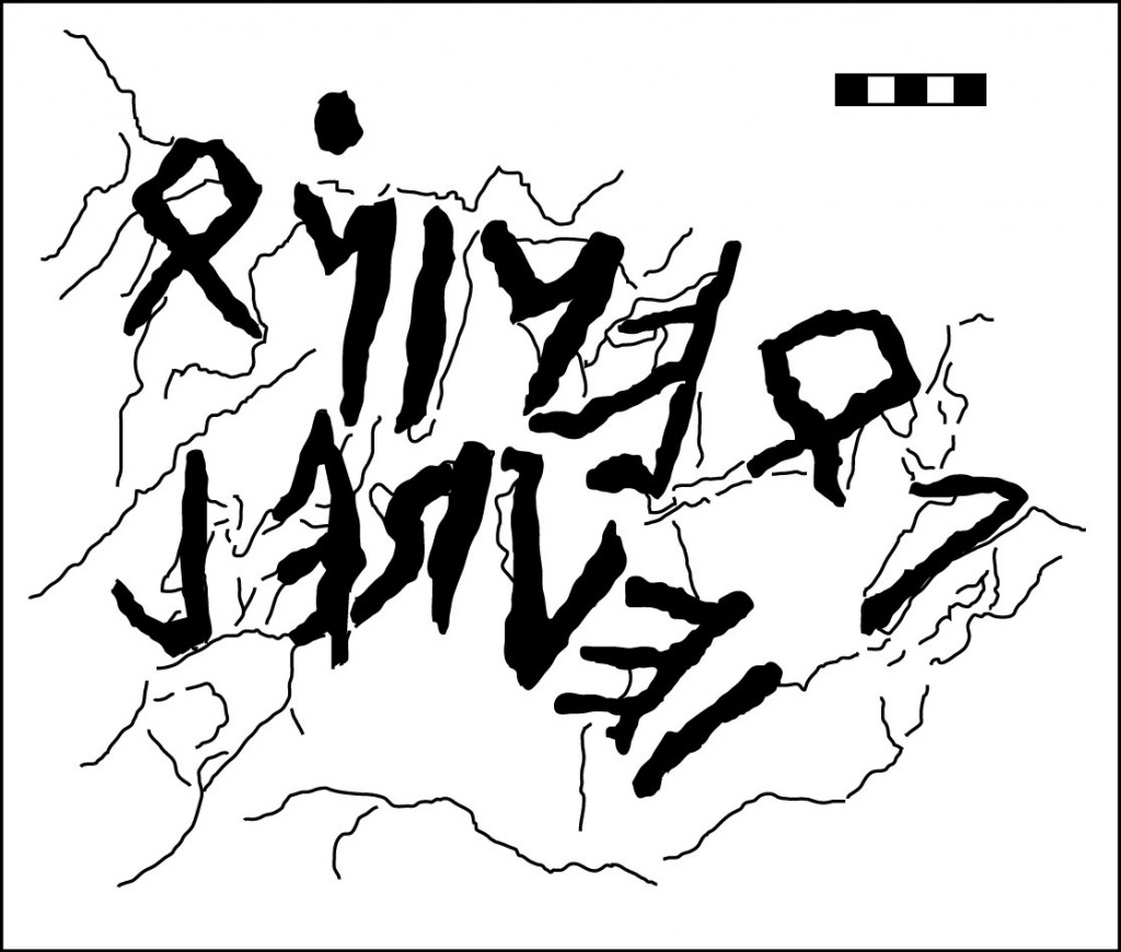 Dès sa découverte en 2005, l’inscription à caractères lépontiques, qui se situe au fond de l’abri (L016), a intrigué. Cette inscription n’avait jamais été observée auparavant et son caractère très particulier en a fait un élément marquant mais également douteux du site du Mur (dit) d’Hannibal.